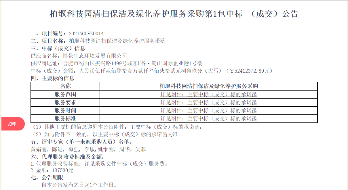 喜讯 | 中标柏堰科技园清扫保洁及绿化养护服务采购第1包