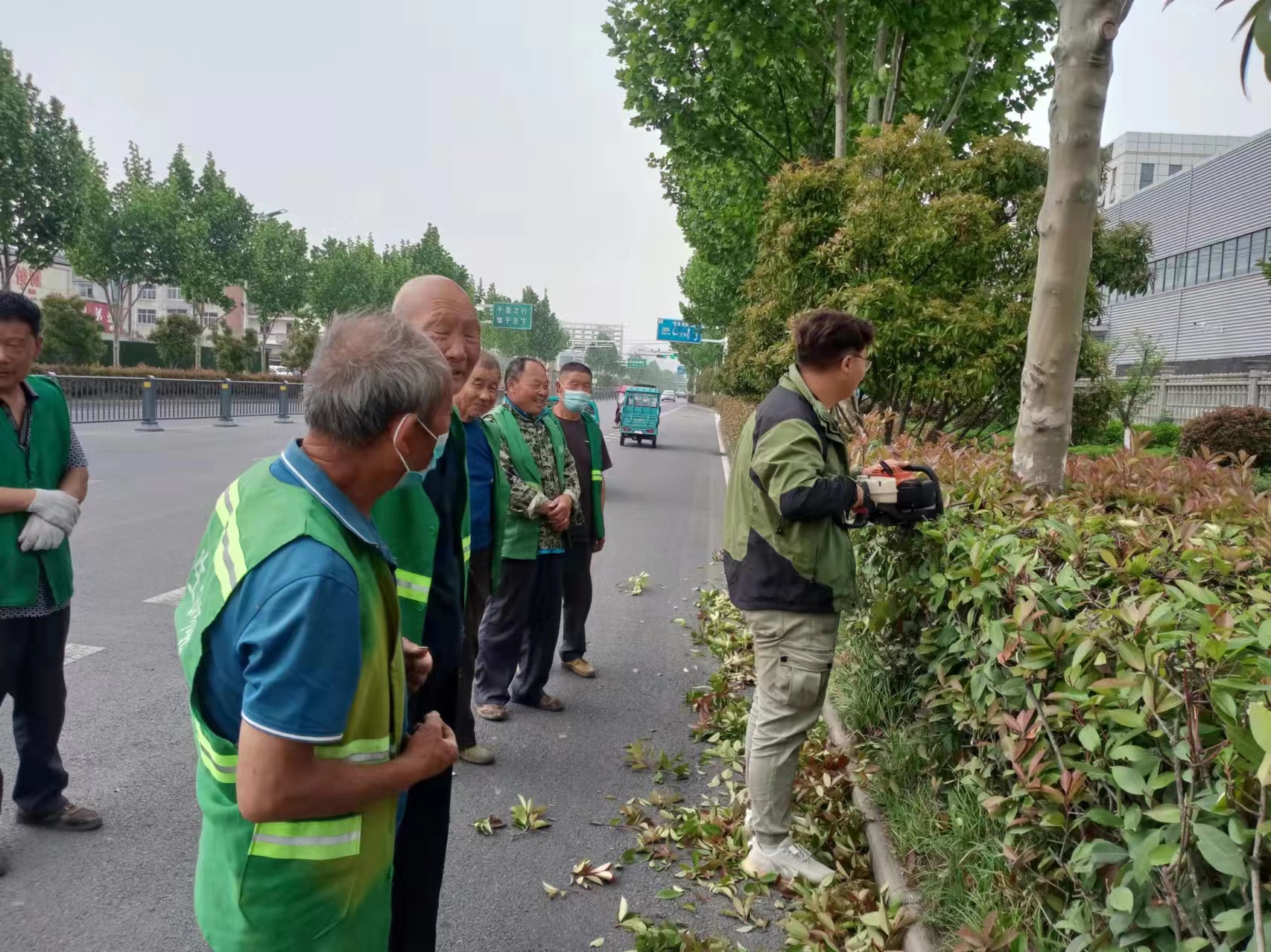 按项目管理要求,合肥市蜀山区的李显飞、梁森定期给现场工人培训。近期,春季修剪工作频繁,有针对性的培训,能减少工作中事故的发生,同时保障修剪质量。