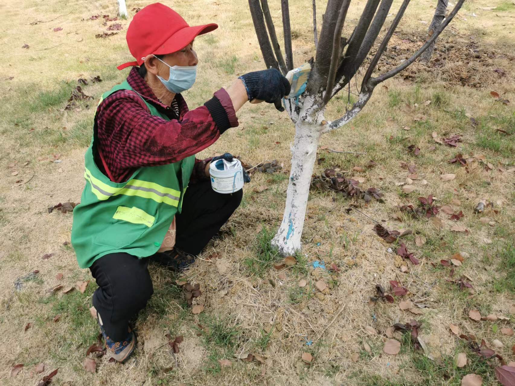天鹅湖公园,园林工人正在技术人员的指导下修剪,每剪一处,立即对“伤口”进行保护处理,帮助苗木受伤组织迅速生长,恢复树势,防止伤口干裂和腐烂病菌侵染,同时封闭伤口。