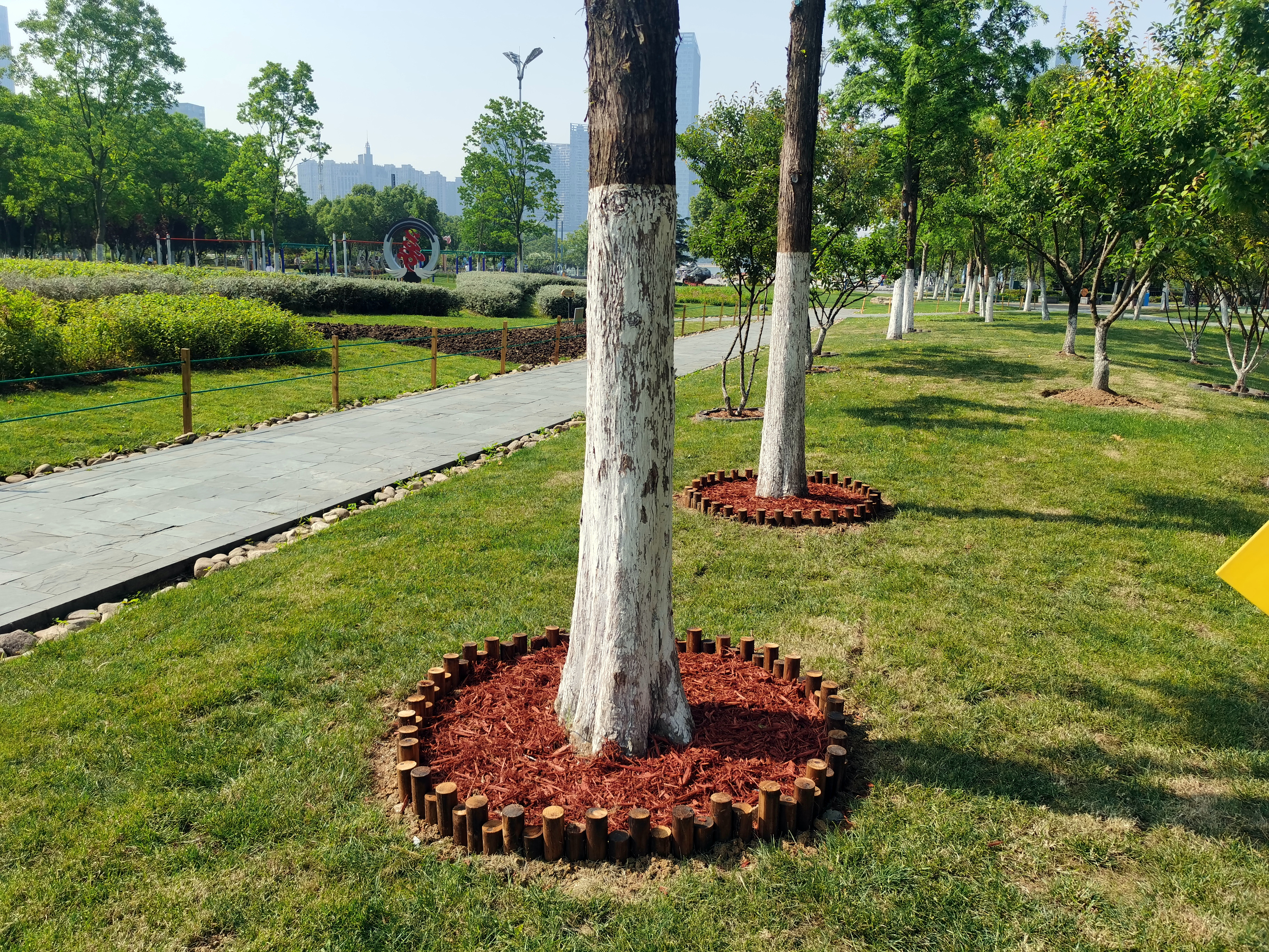 市民在游玩时会不自觉地被一排排整齐的彩色树盘所吸引,令人赏心悦目。目前,树池的改造计划仍在进行中,现已完成180个。