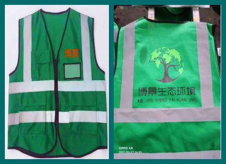 河道工作环境复杂,结合工作性质,按照管理要求,博景生态环境将绿化服装统一化,增加反光条,保证绿化工作的正常开展。在施工中,注重一线工人的人身安全,分发统一亮色雨衣,确保在恶劣天气下的工作有序开展;给每位工人配备安全设施,保证安全为第一生产要素。
