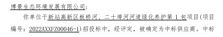 2022年6月1日,博景生态环境发展有限公司正式进驻“板桥河河道绿化养护项目”。