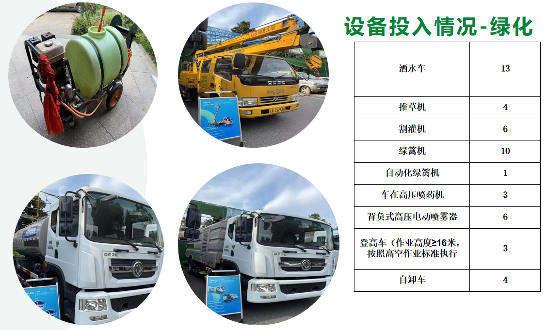 新站高新区道路清扫保洁、绿化管养等城市管理服务第二包项目为正式运营,按照要求投入机械设备。