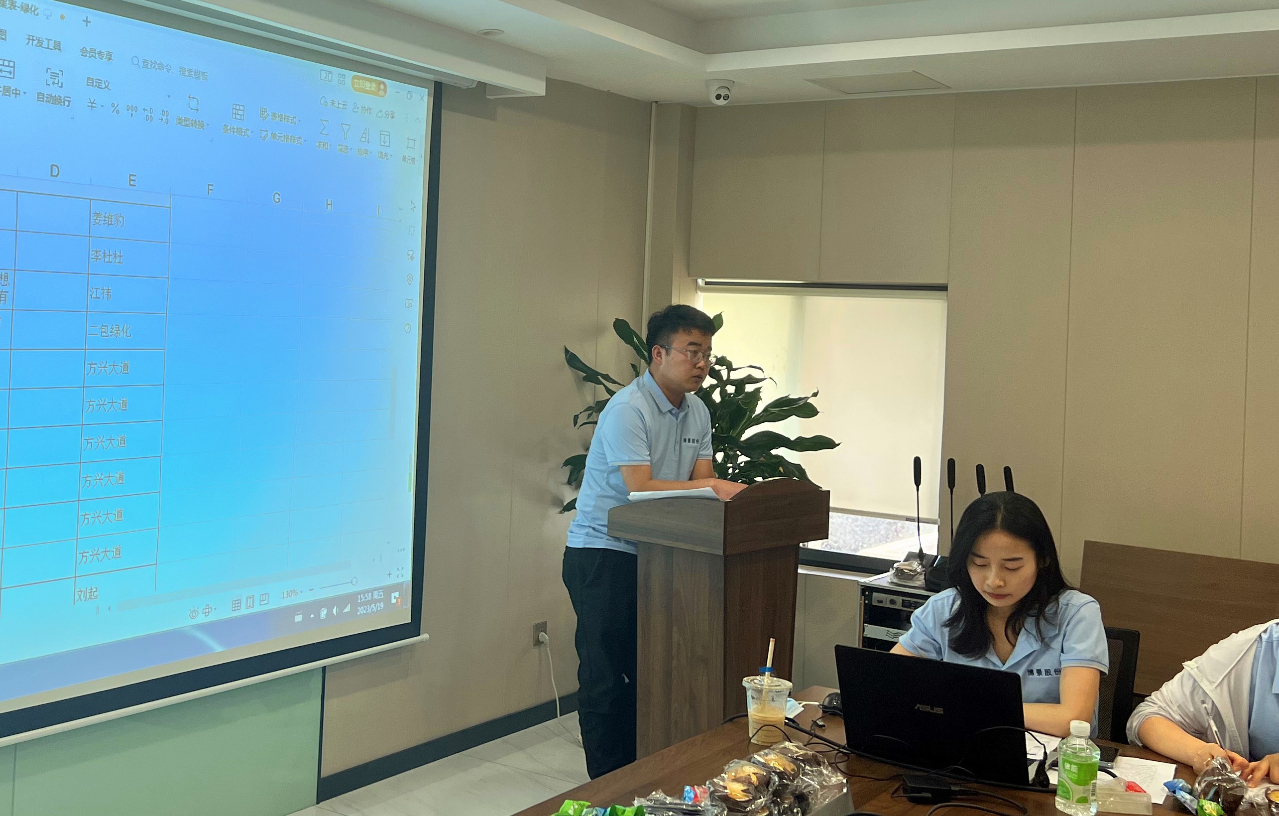 此议题由绿化部阮志忠/环卫部颜磊主讲,绿化部/环卫部代表员工(王庭庭、孟同新、陈杰、孔庆升)发言,分享自己的优秀工作经验。