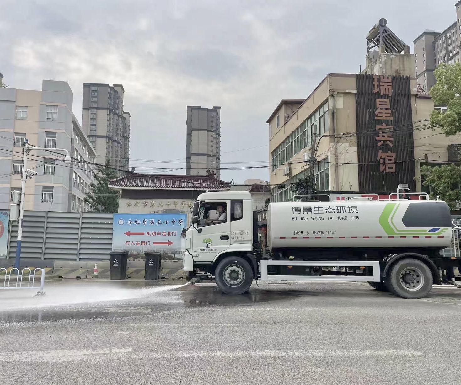 高考期间,我市迎来持续高温天气,气温或将攀升至30℃以上,针对这一情况,博景股份采取高压冲洗、洒水、降尘的方式,合理安排洒水频次,对考点周边及主要道路进行洒水、降尘作业,尽力为考生营造清凉、舒适的考试环境。