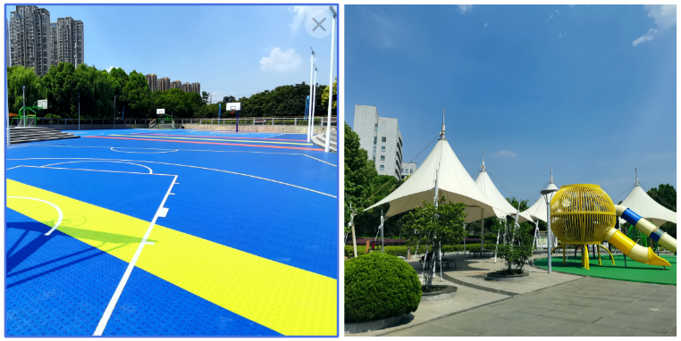 新海公园由于建园时间较早,使用率较高,在常年的风吹雨淋之下饱经沧桑,很多基础设施老化,为更好的提高居民游园体验,去年开始计划筹备设施翻新,今年5月底完全投入使用。其中主要对篮球场铺装面进行翻新改造,并引进了多种新型运动娱乐设施。