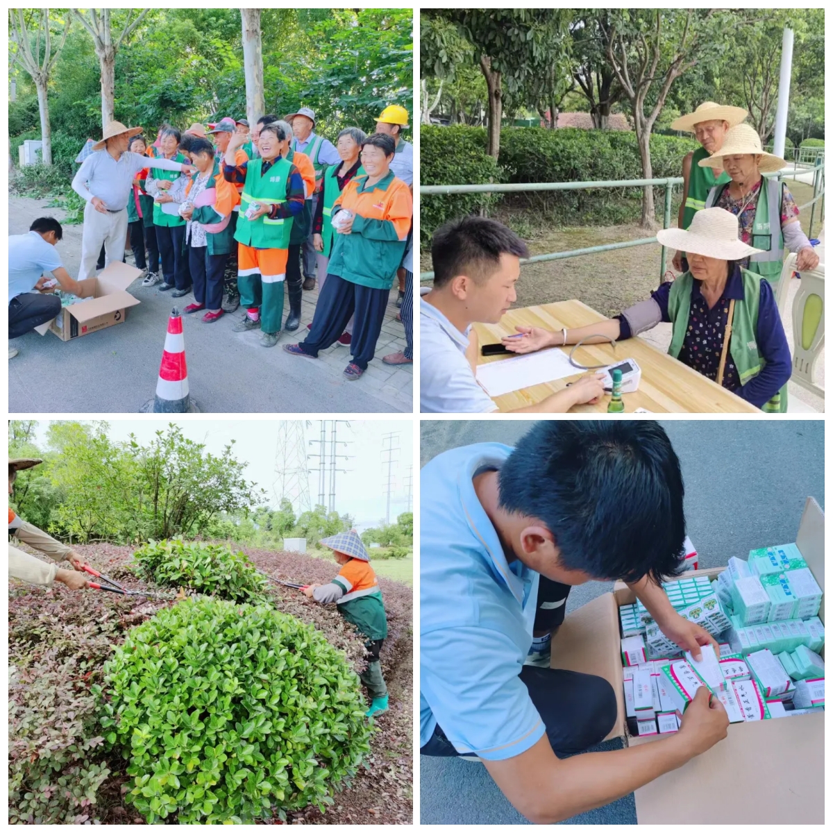 为了保障一线工人们的夏季身体健康,各项目部在6月初就将防暑降温工作提上日程。分发防暑降温药品,密切关注工人健康情况,多措并举开展抗旱保苗工作。高温天气严格实行“抓两头,歇中间”的措施,调整歇息时间制度和考勤制度,减轻劳动强度,严格控制室外作业时间,减少甚至排除高温时段作业,确保劳动者的身体健康和生命安全。