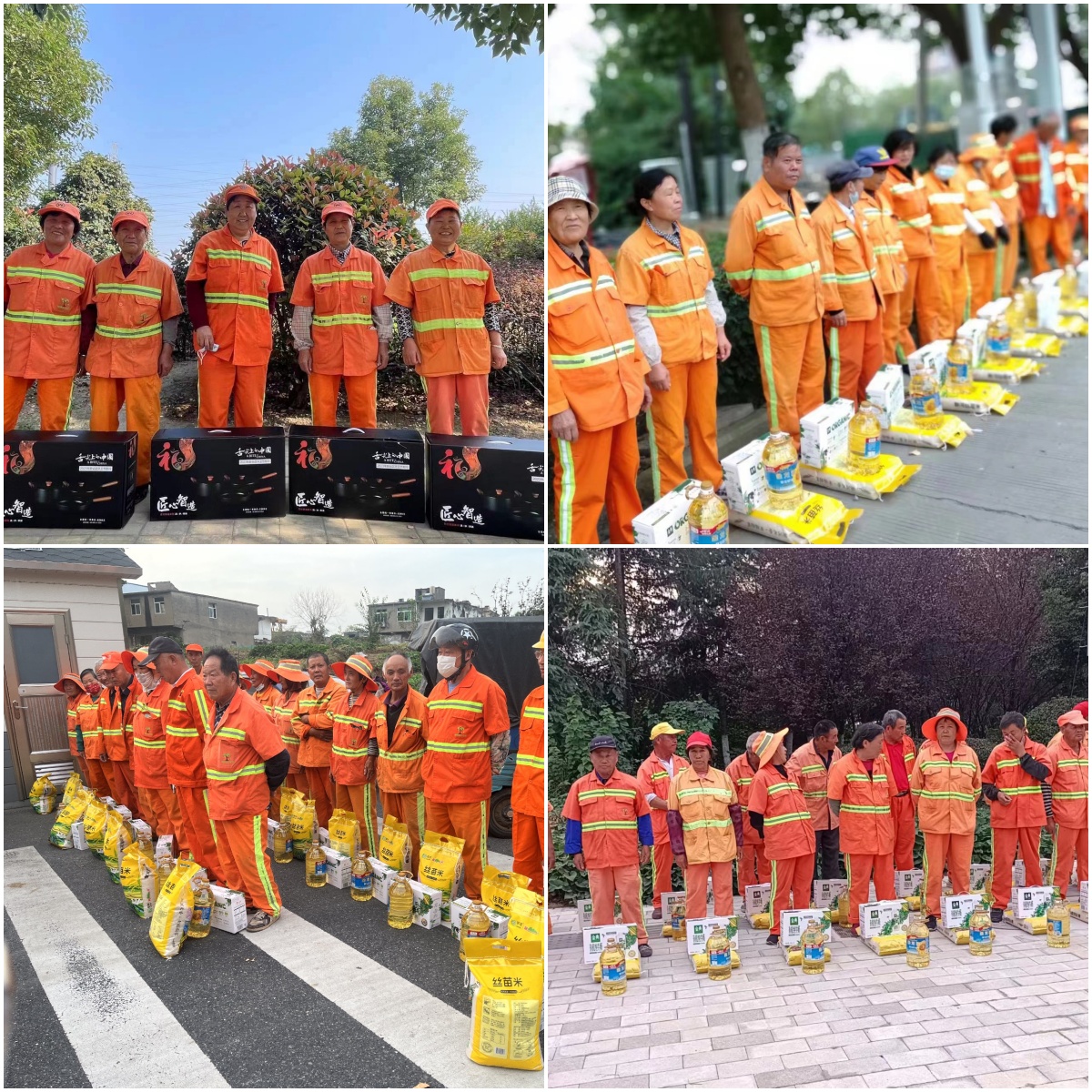 博景股份深入环卫工人的工作一线,为环卫工人送去关爱与温暖。在关爱活动现场,博景股份向辛勤工作的环卫工人们表示衷心的感谢,对他们为城市环境做出的贡献表示敬意。同时送上精心准备的礼品,包括锅具三件套、大米食用油有机奶等健康食品,希望他们在为城市美容的同时,也能照顾好自己的身体。